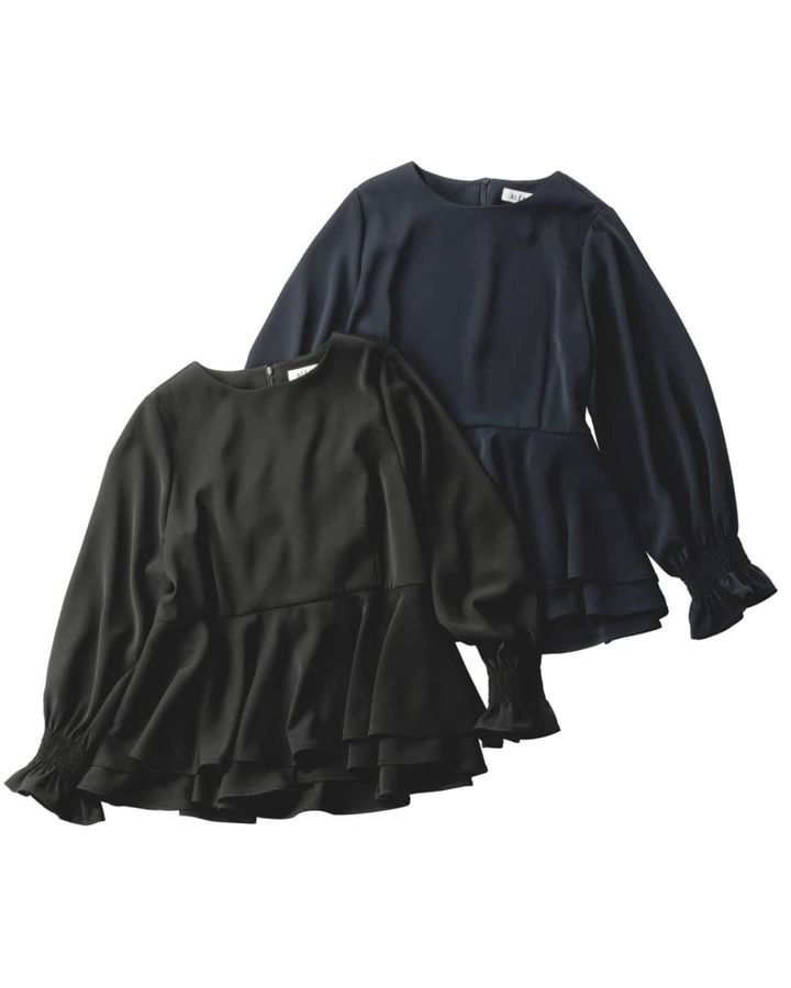 しっとりとした落ち感のある上質な素材がハレの日にマッチ。ウエスト位置から切り替えた、2段のペプラムで大人可愛く仕上げました。保護者会など学校行事でも重宝する万能ブラウスです。