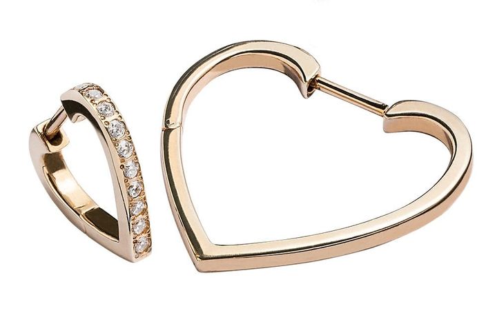 ハートフープピアス ミドル〈Silゴールドメッキ〉¥25,300 1stピアス ミニハートフープピアス タイニー〈Silゴールドメッキ×キュービックジルコニア〉¥23,100ともに(マユ/マユ ショールーム)