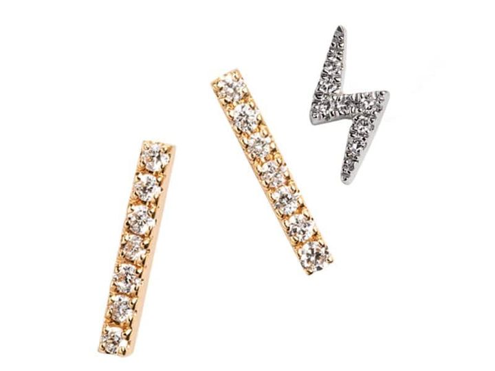 ラインダイヤ〈K18YG×Dia〉¥46,200(ete)イナズマ〈K18WG×Dia〉¥44,000 (片耳価格)(ジュードエム/ビジュードエム六本木ヒルズ)