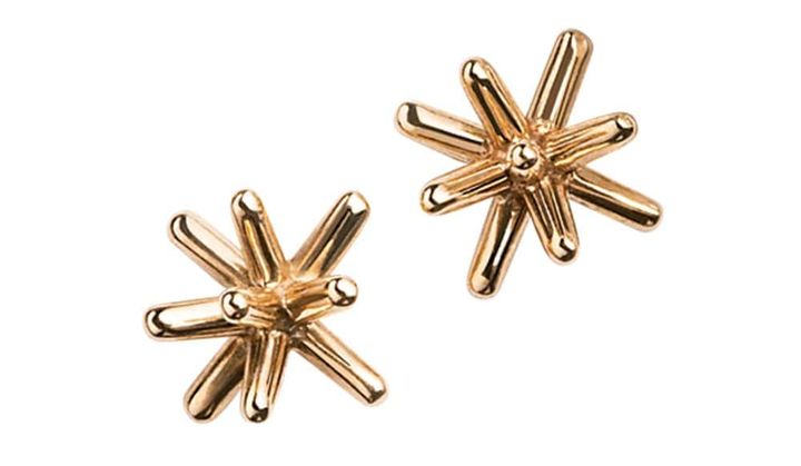 星型スタッドピアス〈K18YG〉¥16,500(アルティーダ ウード)スウィングスターピアス 1スター〈Silゴールドメッキ〉¥23,100 (片耳価格) スウィングスターピアス 2スター〈Silゴールドメッキ〉¥29,700 (片耳価格)(ともにマユ/マユ ショールーム)