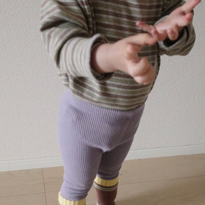 この日の保育園コーデは全身楽天で購入したものです🌼トップスのボーダーは普段着ていても可愛いおしゃれな配色。レギンスは1000円以下でプチプラ⭐️丈夫な素材なので公園など、お外で遊ぶときにもおすすめです。