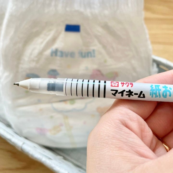 ハンコを検討していましたが、インク補充や手が汚れるなど...色々考えオムツには手書きに着地。このペン、本当に描きやすいです!滲まず、生地にしっかりお名前を書けます⭐︎はじめは毎日5枚程のオムツにお名前を書いていましたが、現在はトイトレも進み毎日2枚程パパッ!と書くだけなので、私はペン派です🖋️✨✨以上、保育園グッズのおすすめでした。楽天ルームでもご紹介しているのでぜひチェックしてみてください✨✨