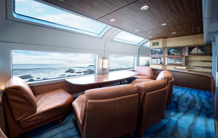 本革のゆったりとしたソファーが設置されており、目的地まで気の合う仲間や大好きな家族とくつろげる時間を過ごすことが可能です。
