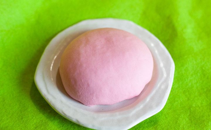 淡いピンクに、つるっつるの表面。某人気キャラクターみたいな見た目をしていますね。
