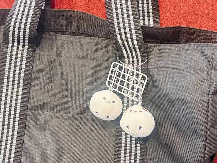 ボールチェーンのついたぬいぐるみもワイヤーに通せば、1つずつカバンから外さなくても、お気に入りのものと交換できますね。