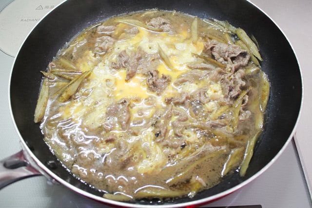 フライパンで煮るだけ♪「ゴボウと牛こま肉の柳川風」を作ってみた!