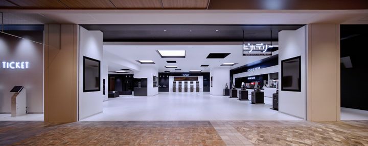 JR熊本駅ビルの「アミュプラザくまもと」7階に位置する「熊本ピカデリー」。ブランドカラーの「ピュアホワイト」と、熊本城を象徴する「マットブラック」のモノトーンで統一された館内は、まるで美術館のような静謐さを湛えている。コロナ禍という“集い”が制限された時代に誕生したこの場所は、巨大な梁や柱といった建築躯体をあえてデザインの一部として取り込み、来館者が自然に寄り添える居心地の良さを追求。広告物さえも文化的な尺度で制御された、知的好奇心を満たすに相応しい空間だ。
