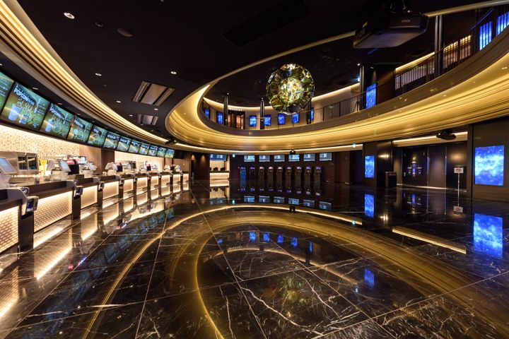 シアター内には、全スクリーンへのRGBレーザープロジェクター導入など、最高峰のスペックが揃う。国内最大サイズのスクリーンを擁するIMAXシアターをはじめ、体感型アトラクションシアター「4DX」と視野270度の3面ワイドスクリーン「ScreenX」が融合した「ULTRA 4DX」、独自の劇場規格「BESTIA」など、作品を“体験”するための選択肢が豊富だ。シートにもこだわり、パリのオペラ座と同じキネット社製のスタンダード席から、電動リクライニングを備えたプレミアムな席まで完備。一部シアターの最前列にはオットマンも設置され、あらゆる利用シーンに応えるスマートなホスピタリティが貫かれている。