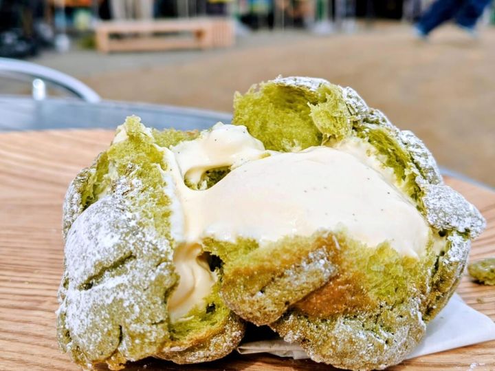 人気は「お濃茶メロンパン」(税込350円)。 外側はザクっと中はふわっとした食感の生地の中に、お濃茶クリームがたっぷり詰まっています。