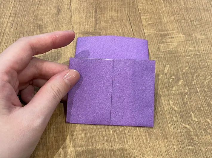 ゼムクリップの先端に合わせて、折り紙が折り重なっている上の部分を折ります。