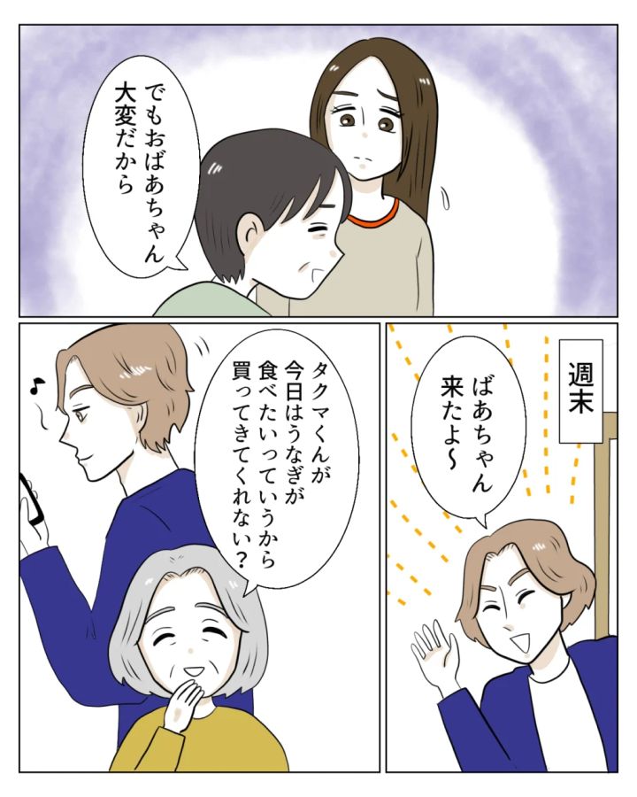 そして週末、甥のタクマくんがやってきました。義母はとても嬉しそうです。すると、なぜか私に「タクマくんが今日はうなぎが食べたいって言うから買ってきてくれない?」とニコニコしながら伝えてきました。