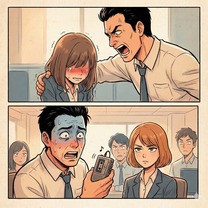 彼女は休んでいる間、ただ泣いていたわけではなかった。着々と反撃の準備を進めていたのだ。周囲からの「最低だな……」という軽蔑の視線に、上司はただ立ち尽くすのみ。