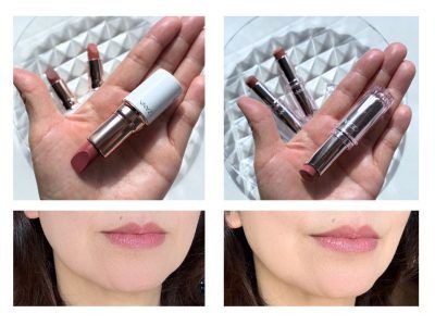 また、どちらも発色がいいのですが、「セザンヌ ラスティングステイリップカラー」は、飲食後ほどよく血色感を残すところや唇への密着感、唇がキレイに見える補正力が素晴らしいと感じました。