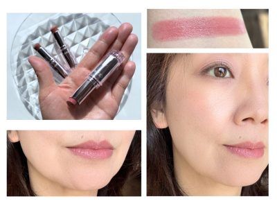 塗った瞬間に感じたのは、唇がキレイに見える補正力。ツヤでカモフラージュするのではなく、きちんと色で整えてくれる感覚。それでいて重たさはなく、体温でとろけるようになじむ質感で、縦ジワにも入り込みにくいのが印象的です。