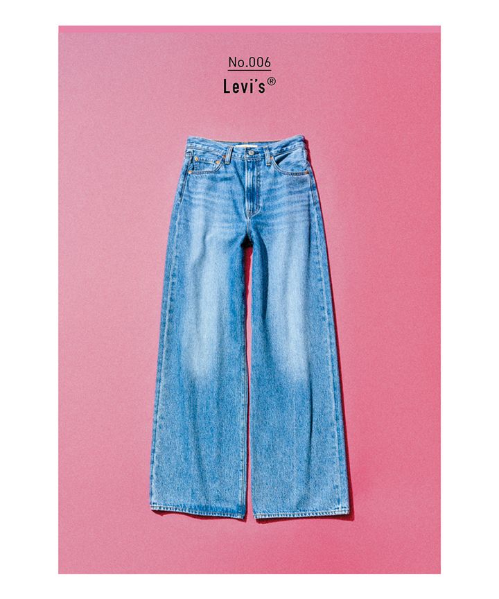 ブルーワイドデニムパンツ/Levi’s®(リーバイ・ストラウス ジャパン) レディースラインの中で最もハイウエストな12インチライズのワイドデニム。高いウエスト位置を強調しつつ、ヒップは引き締めるため、はくだけで美しい脚線に。