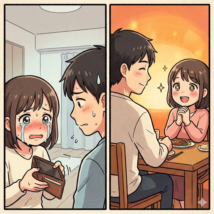 「今日は僕が出すから、美味しいものでも食べに行こうか」