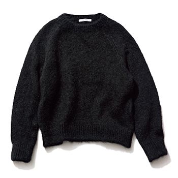 黒ニット/SLOANE(ザ ショップ スローン 新静岡セノバ店) ファーに近い、アルパカ混の繊細な毛並み。色もサイズ感もシンプル、だからふわふわとした風合いが飾り気として効いてくる1枚。下手に盛りたてず、ささやかに特別感をほどこせるベーシックなのに一目置かれる存在。