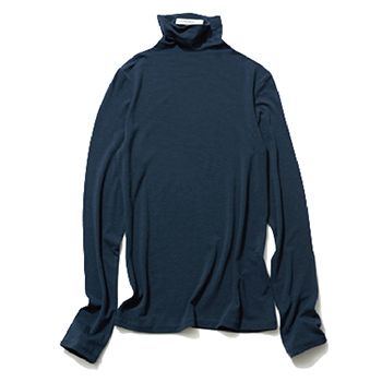 ネイビータートルネックニット/バナナ・リパブリック 上質なウール混のジャージー素材で仕上げた細身のタートルネック。レイヤード上手な薄手のハイゲージの仕立てを生かす、奥行き感を出しやすい深みのある濃紺を採用。Tシャツのような気軽さと黒よりやさしい品のよさで、幅広い組み合わせに投入できる。