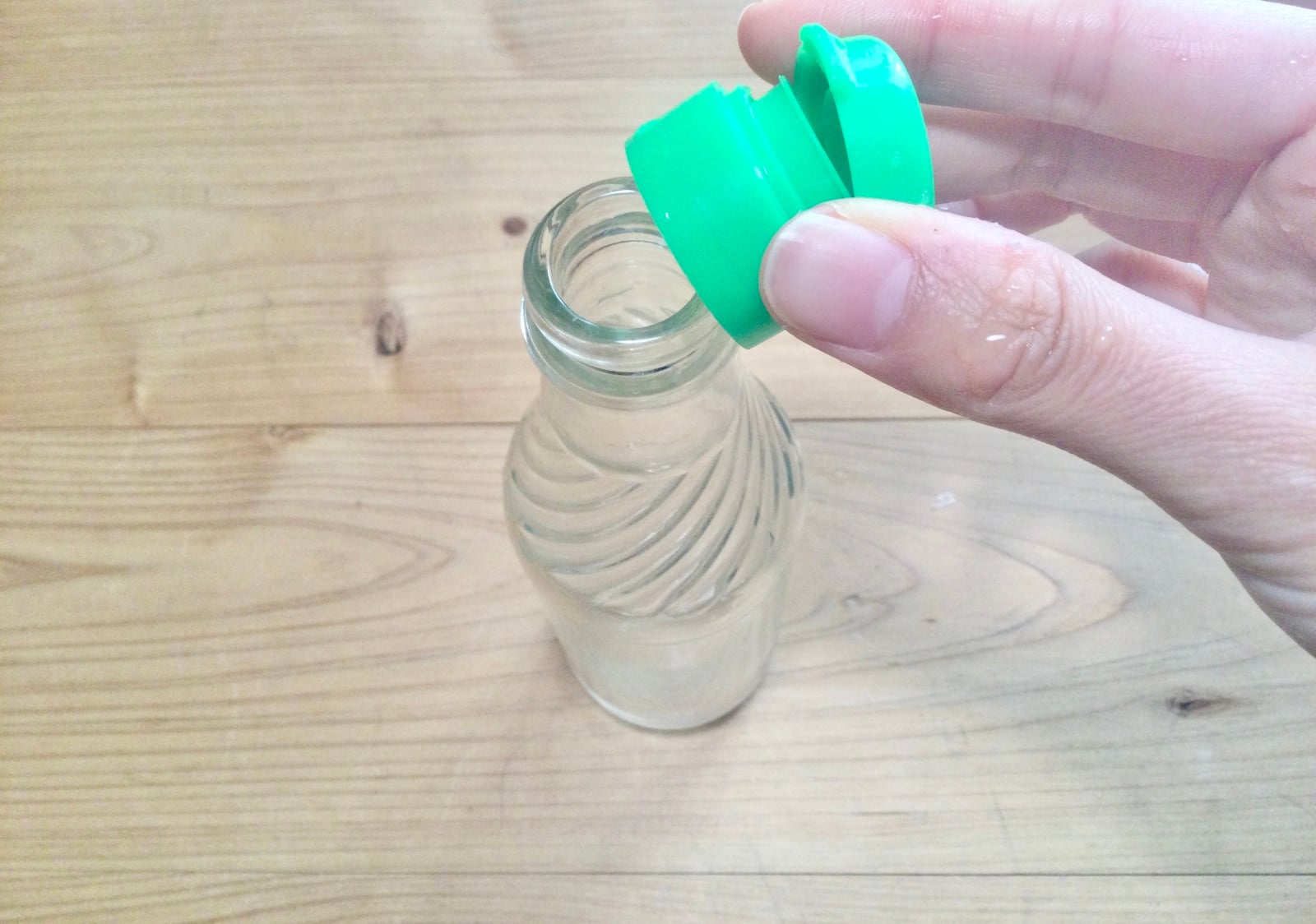 ポイントは、あくまでフタ部分だけを温めること。ボトル本体までお湯に浸けてしまうと、容器が傷んだり変形したりする原因になるため注意が必要です。また、お湯を入れる器は安定したものを使い、倒れないように気をつけましょう。