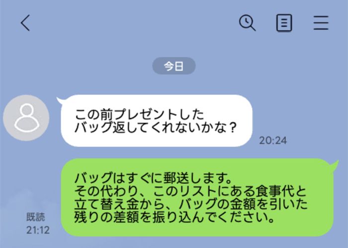 「この前プレゼントしたバッグ返してくれないかな?」