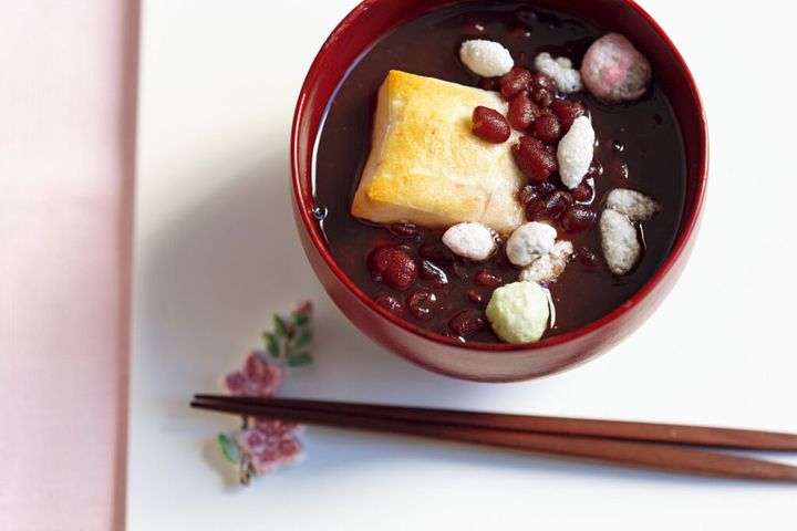 ぜんざいに入れちゃうだけでもOK。カリッとしたひなあられがアクセントになり、いつものぜんざいとは少し違ったおいしさに!