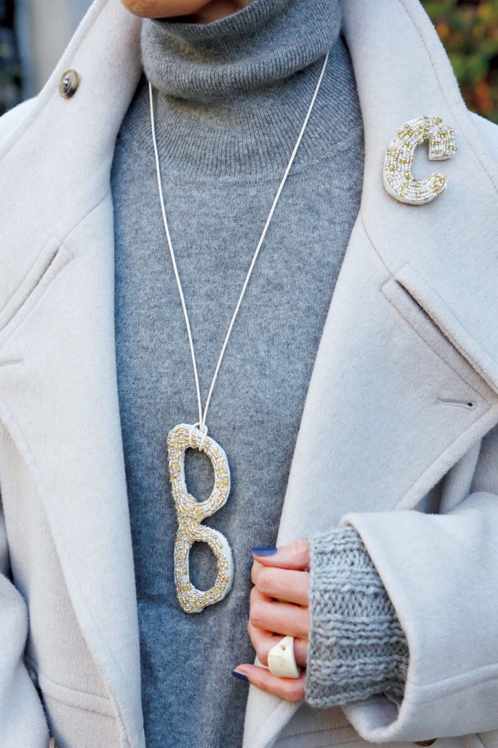 小物のデザイン性が際立つよう、洋服はいたってシンプルに。