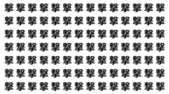 たくさんの「撃」の中に、よく似た別の漢字が1文字だけ隠れています。