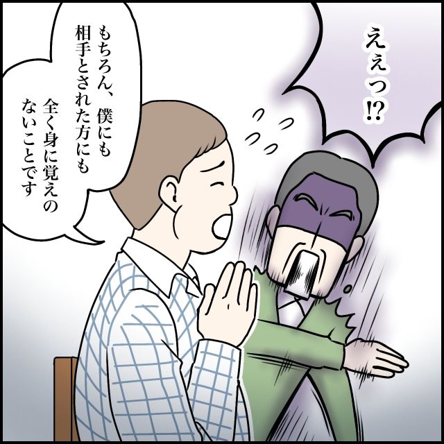 玲美さんが私以外にも慰謝料を請求していたと知り、「えぇっ!?」と椅子から落ちそうなほど驚く義父。「もちろん、僕にも相手とされた方にも全く身に覚えのないことです」と説明する勇也さんを見て、私のときと同じできっとまた玲美さんの勘違いだろうと思いました。