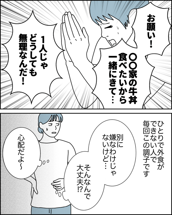 夫「〇〇屋の牛丼が食べたいから一緒に来て! 1人じゃどうしてもムリなんだ!!