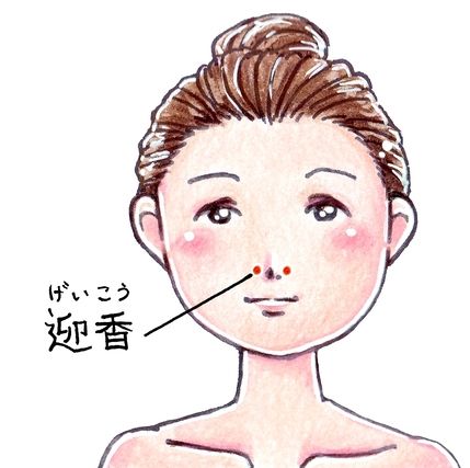 迎香は鼻のふくらみ、鼻翼の左右横に位置するツボ。神経が近くを通っており、味覚に関わる神経の働きを改善する効果が期待できます。