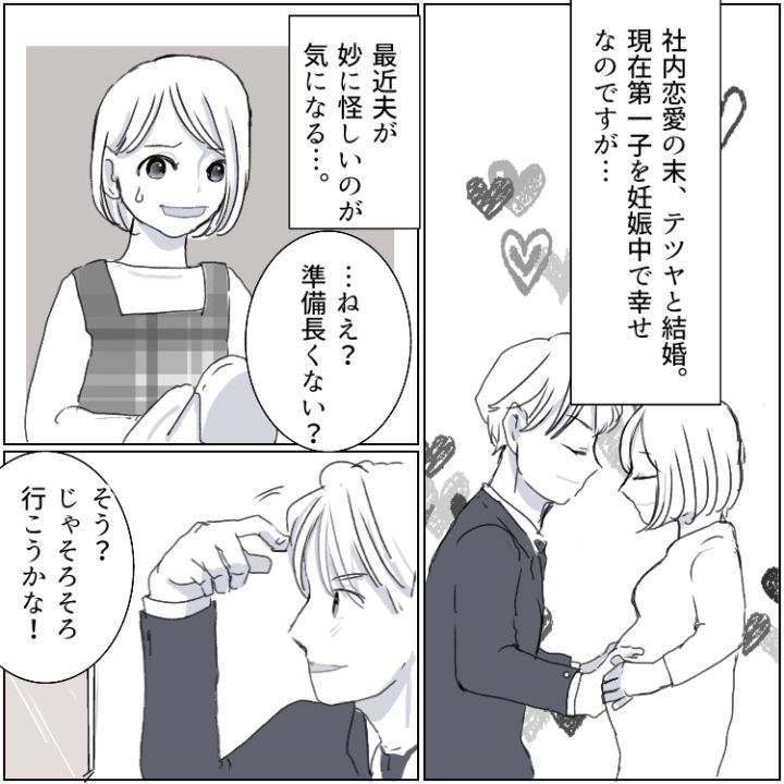 第1子を妊娠中のサオリ。同僚のテツヤと結婚して幸せな日々を送っていたが、最近は妙に夫の様子が怪しいのが気になっていた。