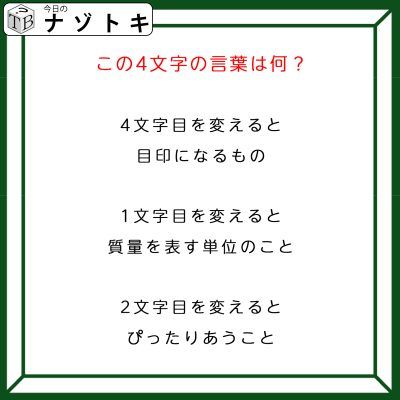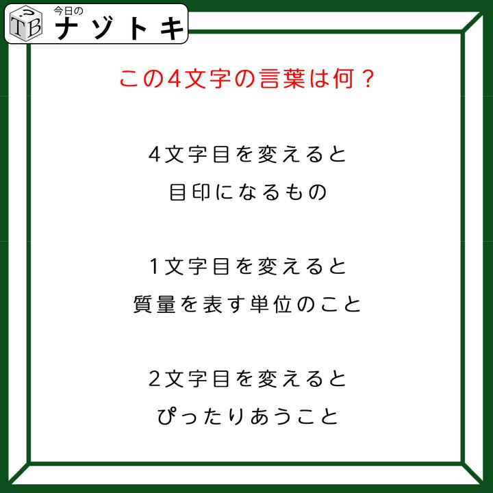 2. クイズです!「1文字を変えて別の言葉にしました!」目印になる4文字の言葉ってなんだろう【難易度LV4.・辛口】