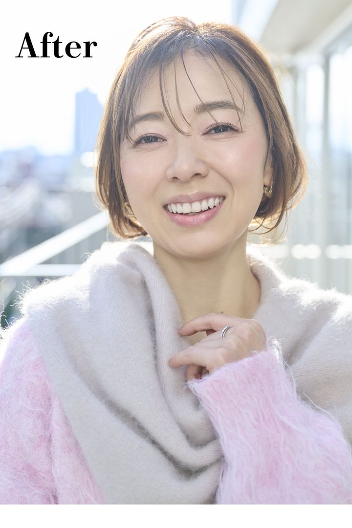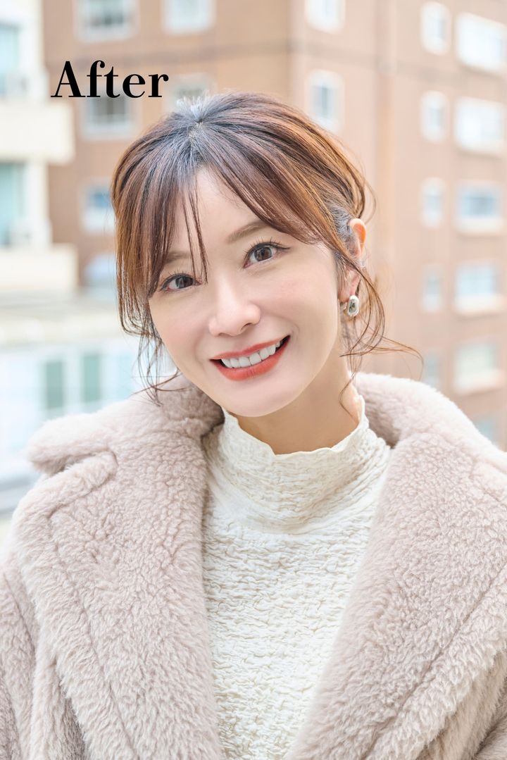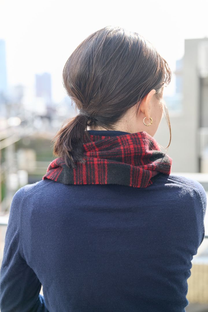 「ボブが好きなので結ぶことなくスヌードを巻き、毛先が広がるのを我慢していました。ミニボブ風にまとめることで、お気に入りのボブのままスッキリ仕上がったのが嬉しいです」