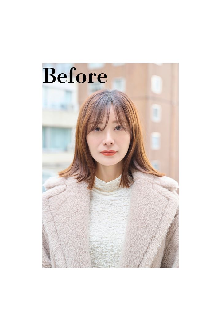 ボリュームのあるカラーのコートを着ると毛先が広がってしまうので、まとまりのない台形シルエットになってしまいます。