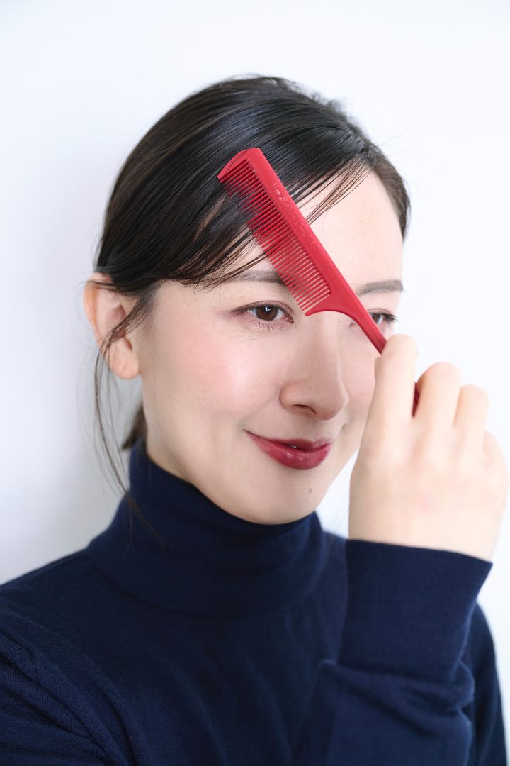 「髪を結べば毛先の広がりを抑えられるものの、地味に見えるのが悩みでした。クシュっとしたシニヨンは、まとまりがあるだけでなく今っぽさもあるのが気に入りました」