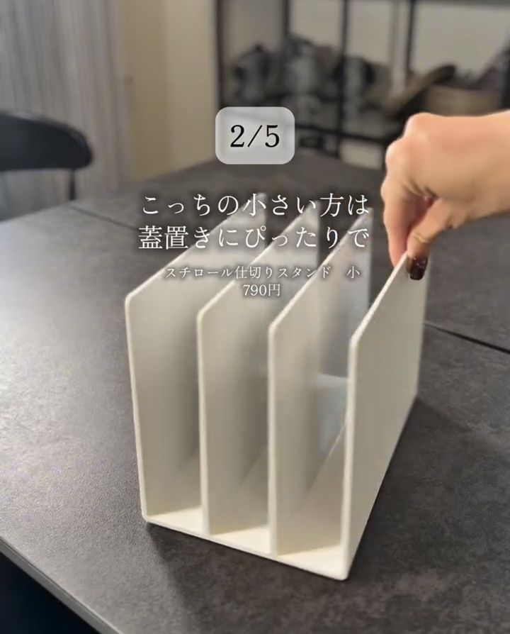 さらに「スチロール仕切りスタンド 小」は、かさばりがちな「蓋置き」にぴったり。