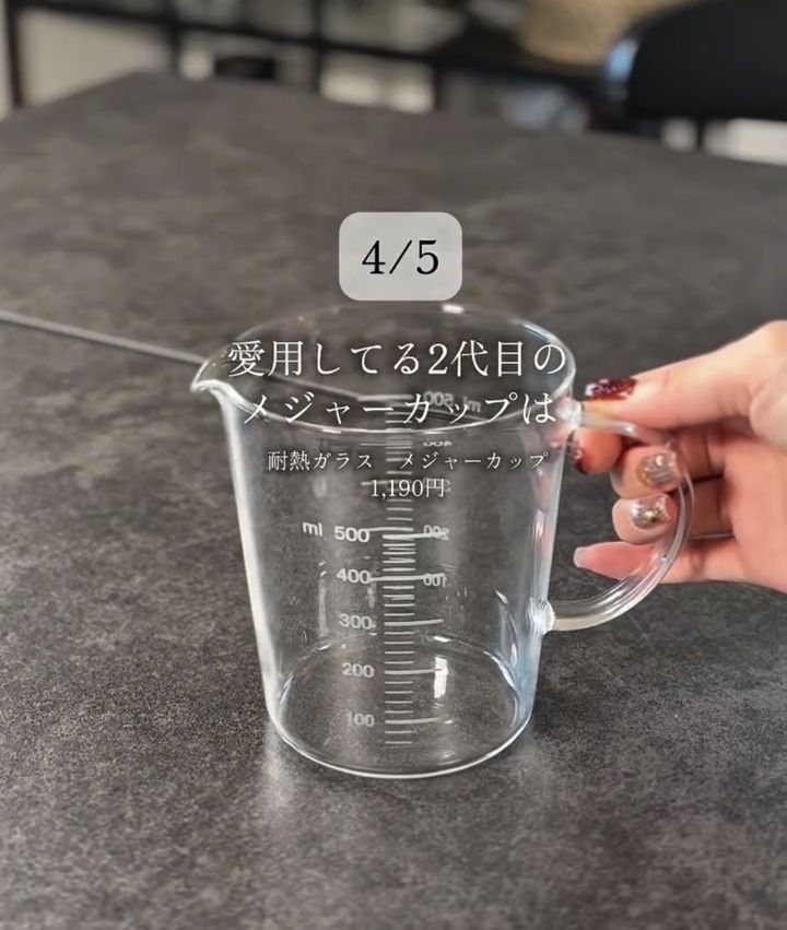 2代目として愛用されるほど優秀な「耐熱ガラス メジャーカップ」は、調味料を測ってそのまま電子レンジでチンできる優れもの!