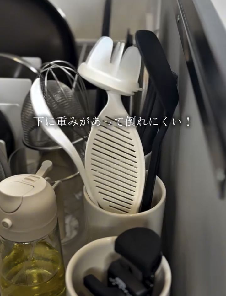 おたまやフライ返しなどのキッチンツール。立てて収納していると、重みで倒れてきてイライラすることはありませんか?