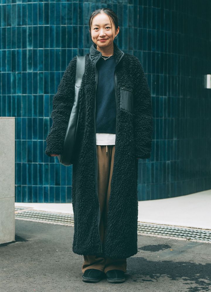 3. ボアアウターをモードに着こなす! 『ミュウミュウ』レザーバッグとのバランス感が◎ | HugMug