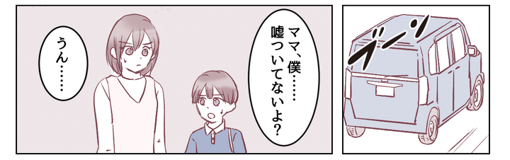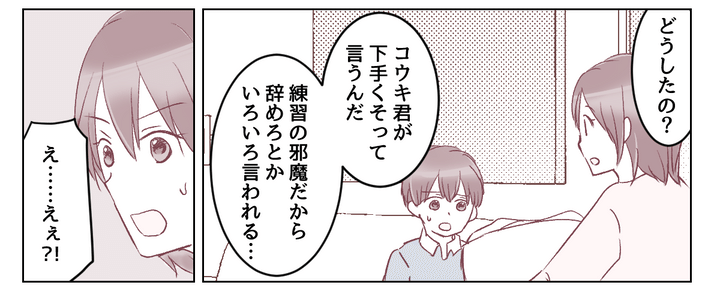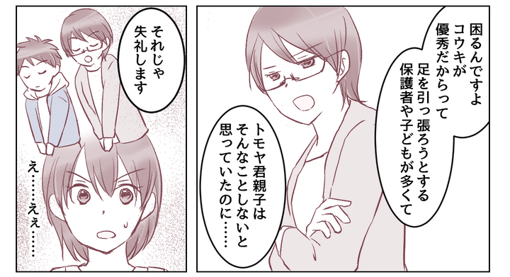 駐車場でばったり会ったコウキ君に、私はそれとなく事情を聞こうとしました。しかしコウキ君は「そんなこと言ってない」とトモヤの言ったことを全否定。コウキ君のお母さんはまるでこちらを睨みつけるようにしてきました。