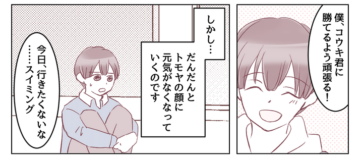 けれどトモヤが同じレーンで練習するようになって、下級生からライバルという存在になると、とたんにコウキ君の攻撃がはじまったのです……!