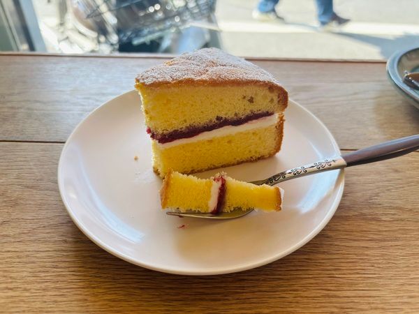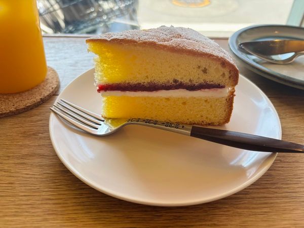 ヴィクトリアスポンジケーキは、しっかりとしたスポンジにラズベリージャムとバタークリームが挟まっているケーキで、甘さがちょうどよく、ぱくぱくっと食べてしまいました!