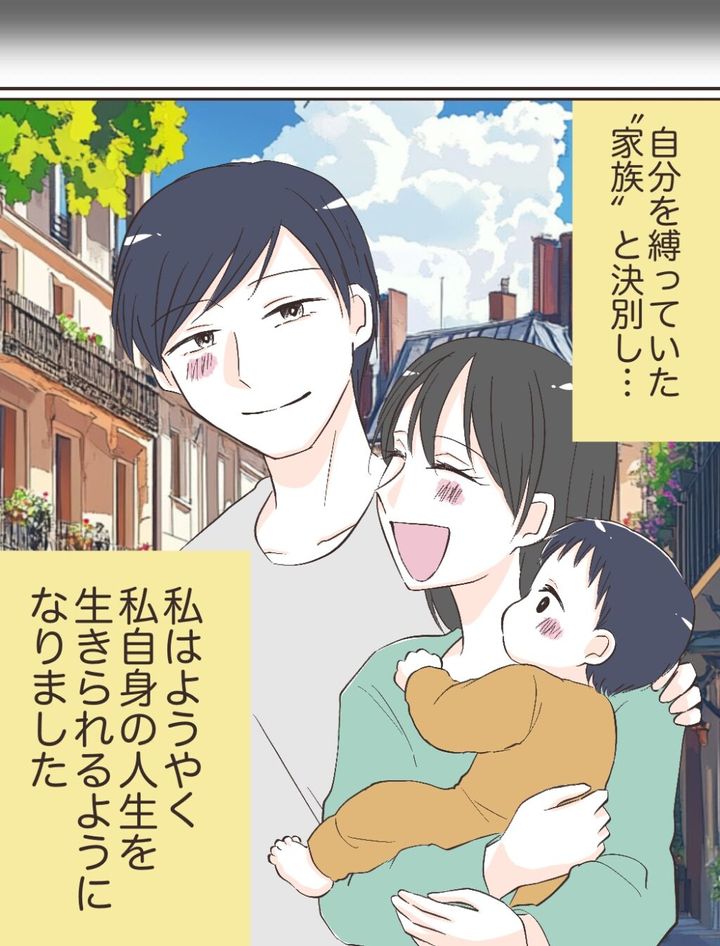 自分を縛り続けていた『家族』と決別し、私はようやく、自分自身の人生を歩き出すことができました。ケイスケと息子とともに、私たちはまったく新しい家族になります。過去に縛られることなく、これからは自分たちの幸せを大切にしながら、前を向いて生きていきます。