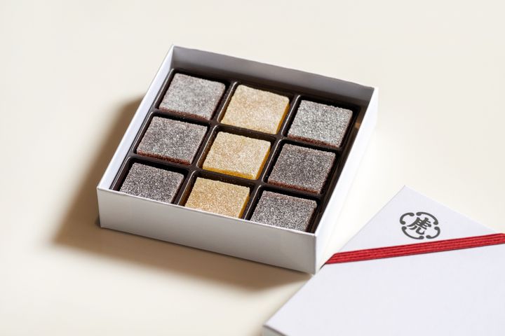 TORAYA GINZAでしか買えない人気の「ちぐさかん」は一口サイズの羊羹で、常温で保存できるので持ち歩きやすく、少人数のご家族やオフィスでも召し上がっていただきやすいと評判の手みやげ。