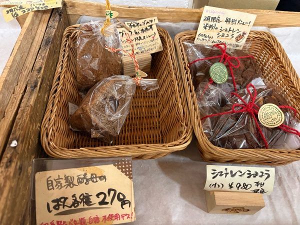 2月のメニューは ・カカオとココナッツのおからぱん ・薬膳シナモンロール ・黒糖生姜紅茶ぱん ・米粉と甘酒のシュトレンショコラ ・クグロフハイカカオ ・希少糖ジャム&コンポート ・全粒粉クロワッサン(板チョコ入り) ・九州全糖粉山食orくるみチョコカンパーニュ ・珈琲豆と炒豆のそば粉ぱん ・パオ万各種 ・米粉オンリーイングリッシュマフィン などたくさんの種類があります。