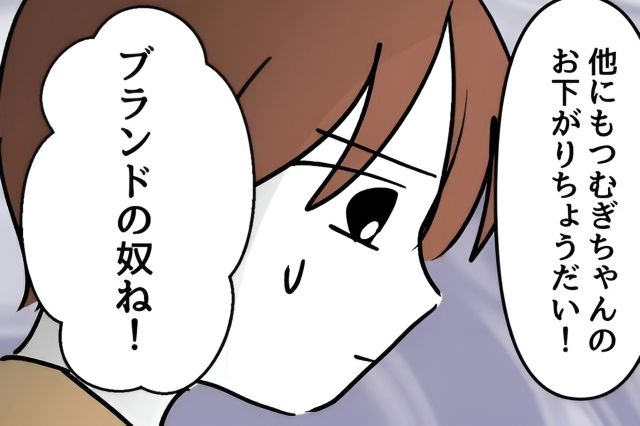 つむぎちゃんの着ているカーディガンが、義姉からお下がりでもらったブランド物だと知ったたまみは、「ずる~い!」と言い始めます。さらに、「なんの仕事してるの!?他にも色々貰ったりするの!?ずるーい!」と羨望を隠そうともしません。
