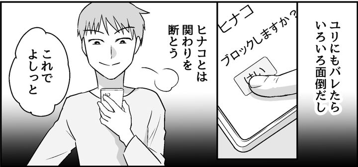 オレは養育費をストップし、ヒナコの番号を着信拒否し、メッセージをブロックして連絡を絶った。ヒナコはいつでもオレに合わせてくれたし、オレの自由にさせてくれた。きっと何も言わず、悲しそうな顔をするだけでおとなしく引き下がるはずだ。