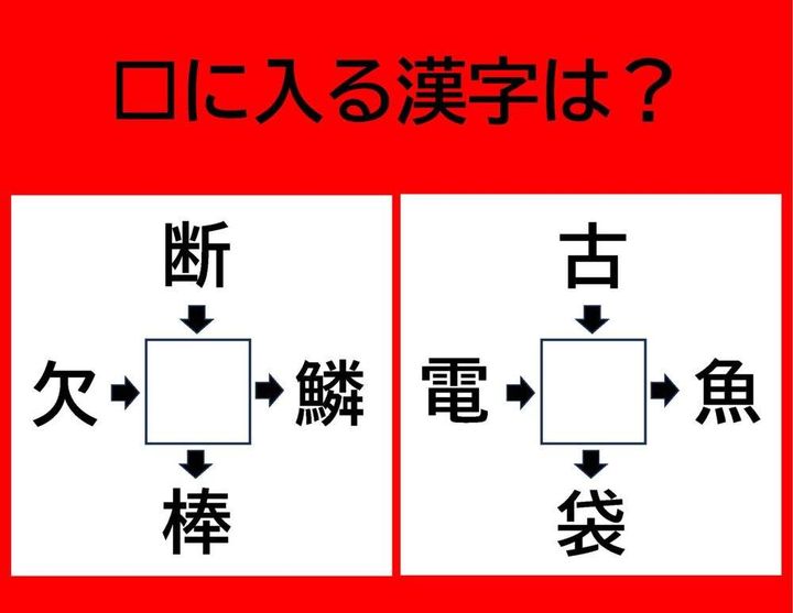 【漢字パズル】欠□、断□、□鱗、□棒 □に入る漢字は何…?