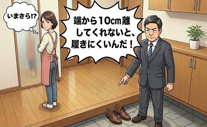 「どうせ靴をそろえるなら、玄関の端から10cm離れた位置に置いてくれないと、履きにくいんだ!」