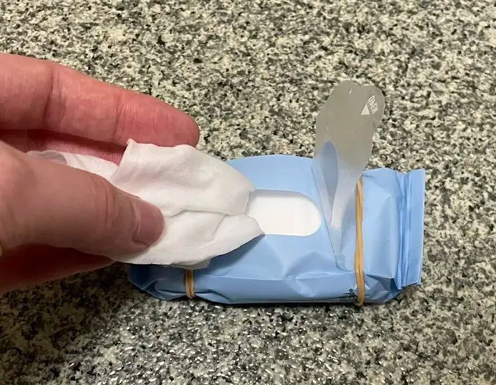 輪ゴム2個でウェットシートを1枚ずつ出す方法